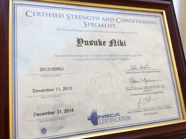 - NSCA認定ストレングス&コンディショニングスペシャリスト(CSCS)