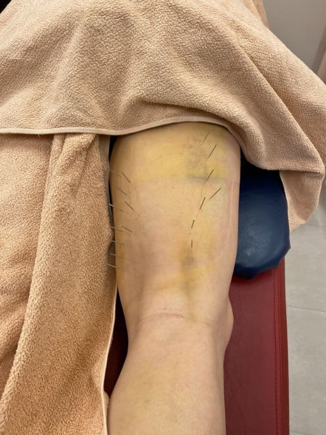筋肉の瘢痕化を防ぐため鍼治療で柔軟性をつけます